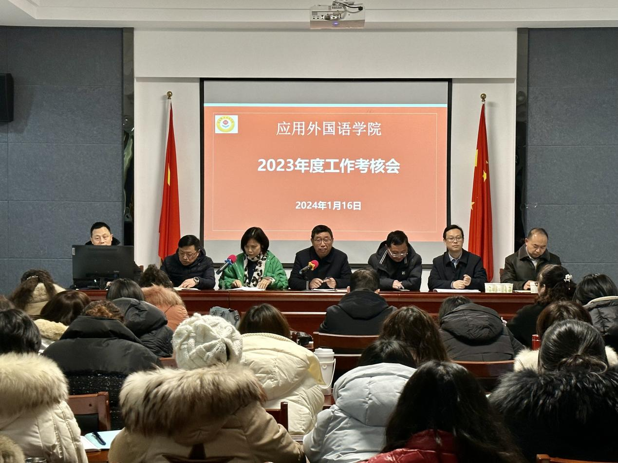 2024年1月16日下午,beat365中文官方网站在2402会议室召开2023年度工作考核会。学校年度工作考核组成员、教务处处长余磊等一行参加考核会议、学院院长刘晓鹂及全体教职工参加了会议,会议由余磊主持。