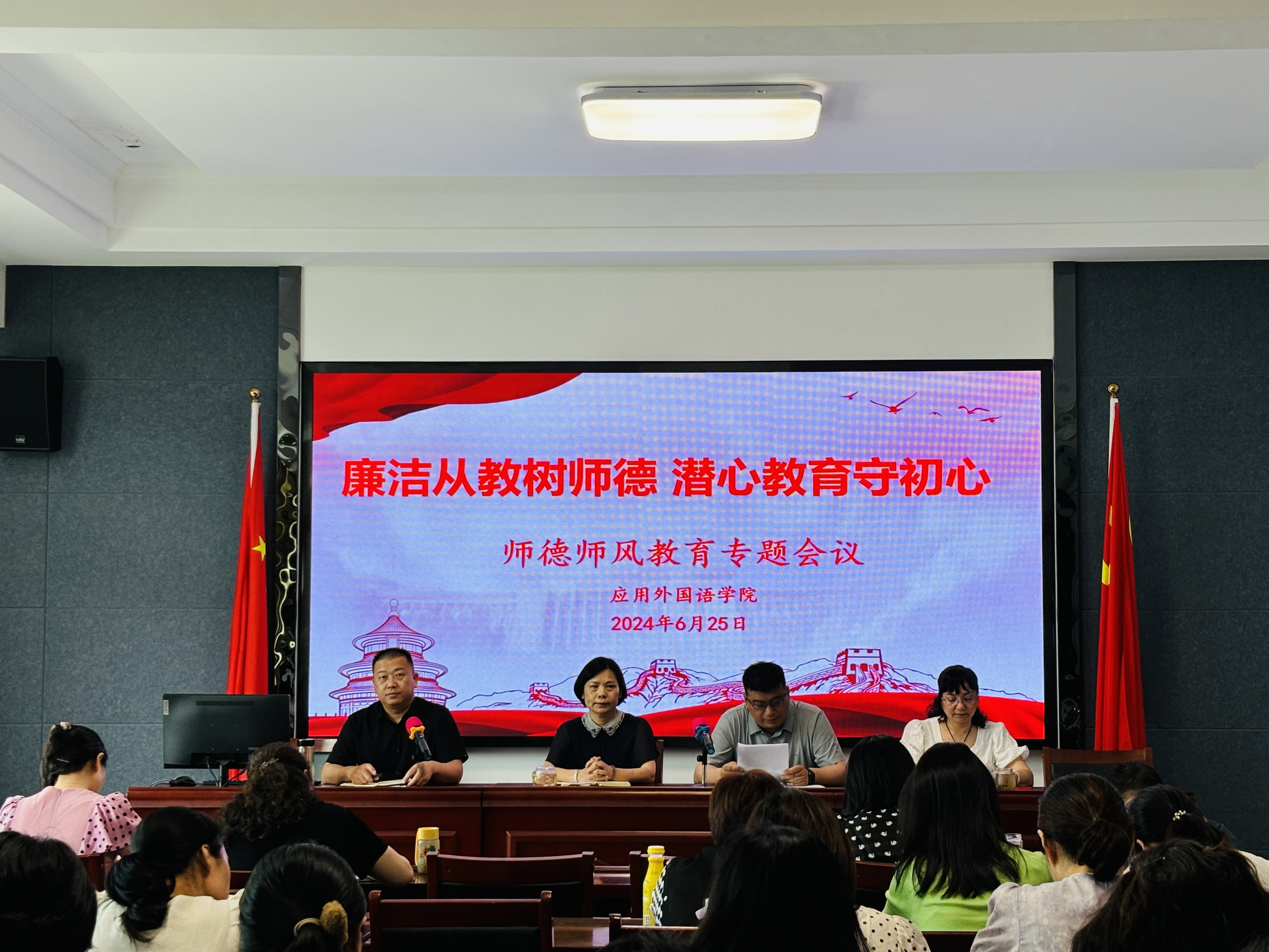 2024年6月25日下午,beat365中文官方网站在2402会议室召开了“廉洁从教树师德、潜心教育守初心”为主题的师德师风教育专题会议,beat365中文官方网站全体教师参加了会议。会议由beat365中文官方网站副书记张泽锋主持。