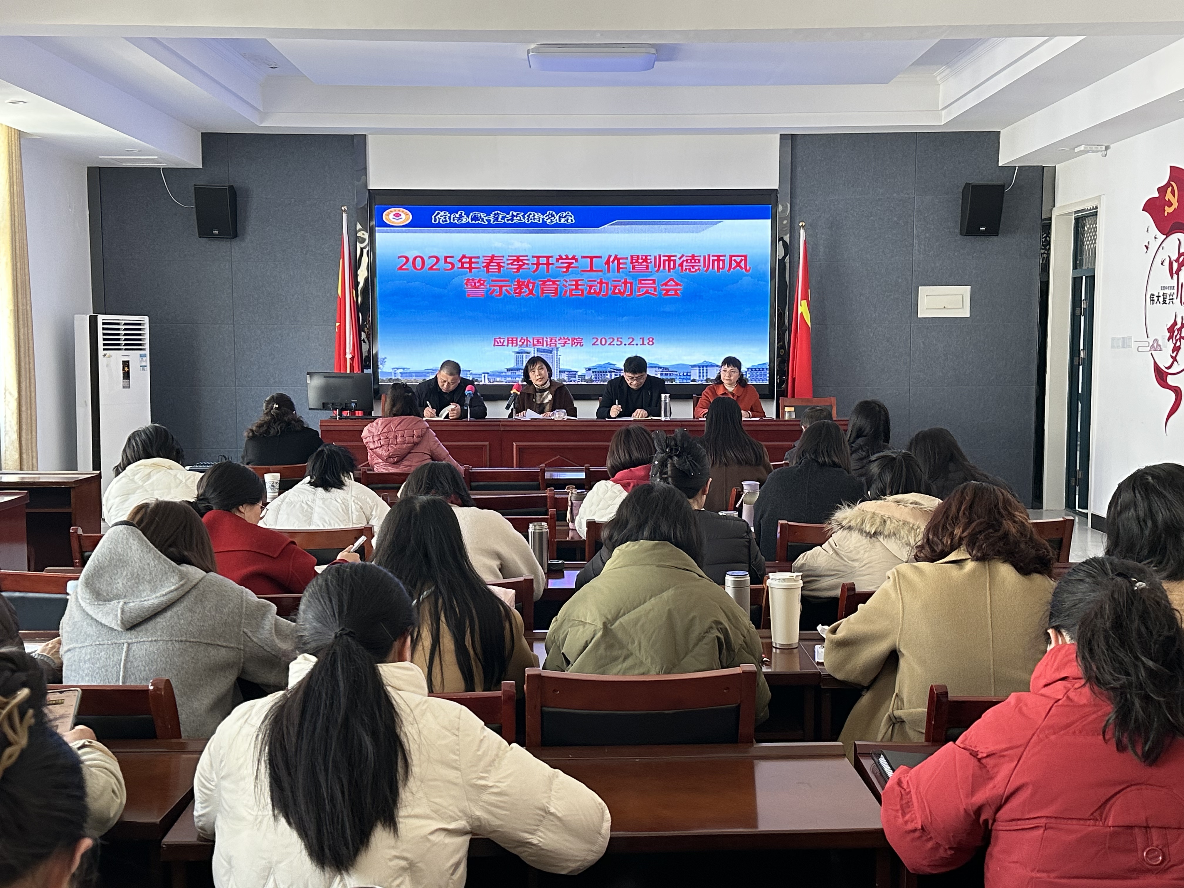 会上,副院长王中华详细传达了《关于开展师德师风警示教育活动的通知》、《新时代高校教师职业行为十项准则》和《教育部关于高校教师师德失范行为处理的指导意见》。副院长刘文敏就新学期教学工作作了具体安排。