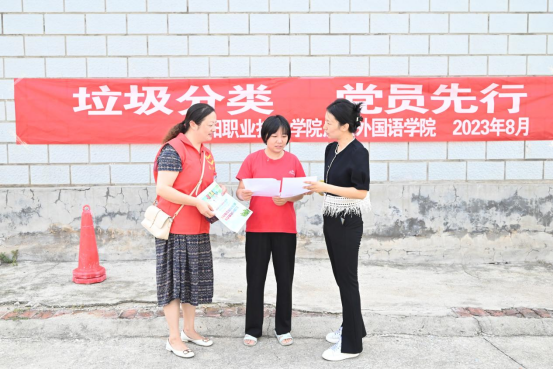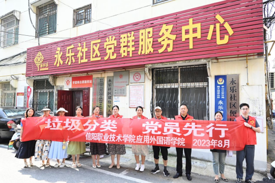 为了推动垃圾分类工作、提高社区的环境质量,不断提升党支部凝聚力、向心力,进一步加强作风建设,推动“支部联支部”活动出实效,2023年8月24日上午,由beat365中文官方网站教工党支部组建的“圆梦志愿服务队”在南京路永乐社区开展“垃圾分类,党员先行”主题党日暨志愿服务活动。