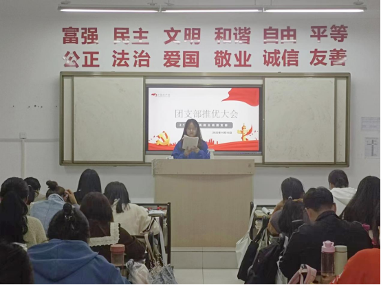 大会伊始,各团支部书记清点各班参加“推优”大会的团员人数,须有半数以上有表决权的团员到会方可进行。接着由团支部书记介绍符合“推优”条件的候选人名单,候选人围绕个人情况、对党的认识、入党动机等方面内容依次上台进行自我介绍。各位候选人介绍完毕后,在场团员进行无记名投票,随后在各团支部书记的监督下进行唱票,确定各团支部的推优人选名单。最后,同学们用掌声祝贺获得推优资格的同学。这既是一种光荣,也是一种使命,意味着他们将会面临更严格的考验,也期待同学们未来不断提升自我能力和政治素养,争取早日加入中国共产党,在自己的青春中留下浓重而独特的一笔。