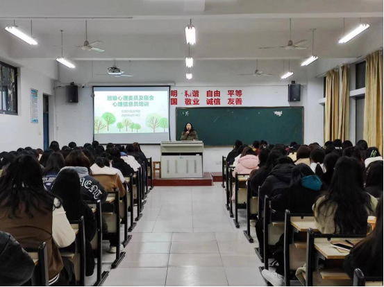 为进一步提高班级心理委员及宿舍心理信息员的工作技巧和能力,筑牢心理健康四级防控网,beat365中文官方网站于2023年2月14日晚在2429多媒体教室开展班级心理委员及宿舍心理信息员培训。学院在校的20个班级、170个宿舍的心理委员及心理信息员全员参加了培训。