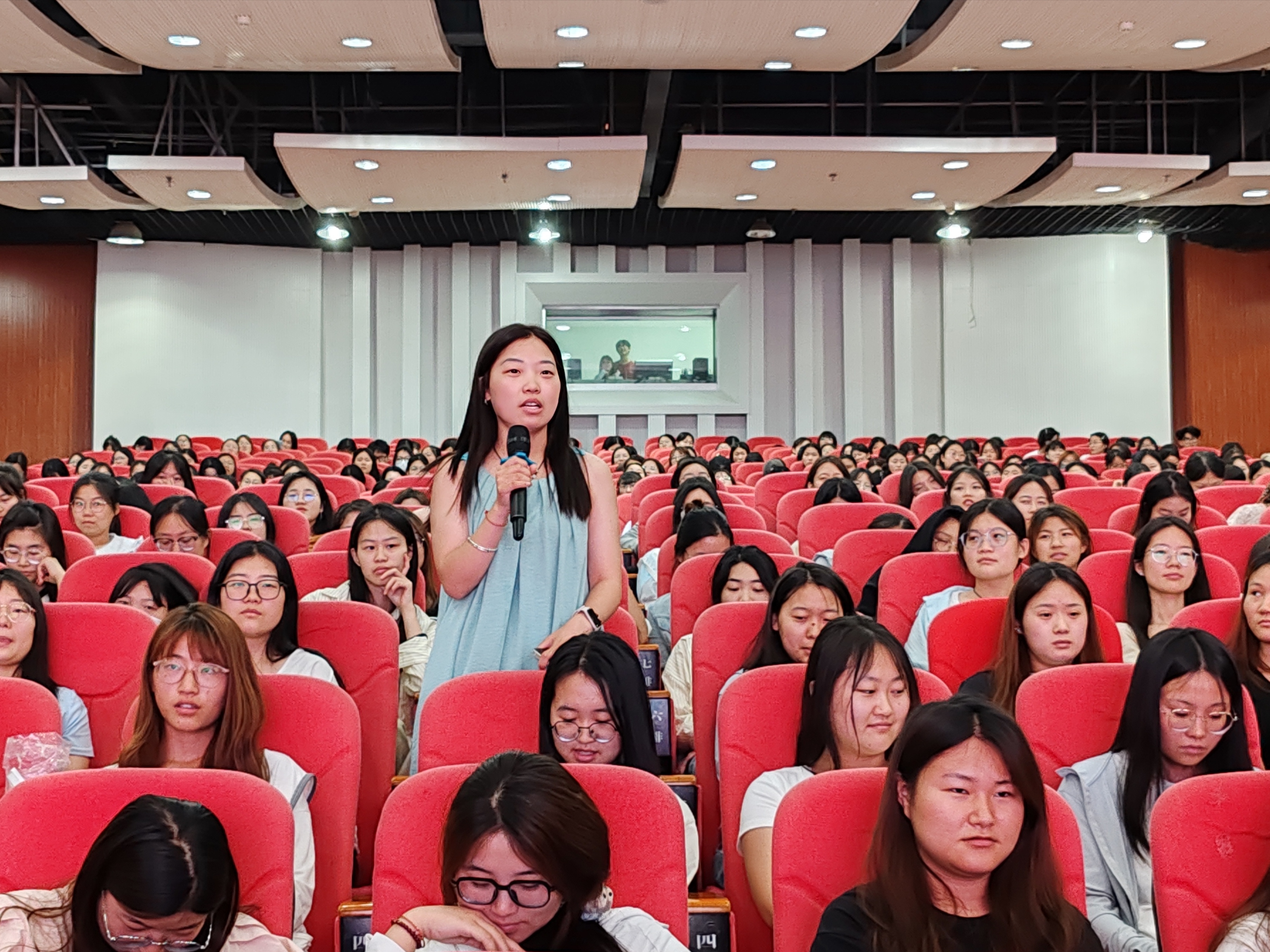 会议伊始,张泽锋介绍张孟晓是中共党员,在校期间曾获得“优秀教学信息员”、“校级十佳青年”、“校级三好学生”、“校级优秀实习生”、“河南省三好学生”、"河南省优秀毕业生”等荣誉,是同学们中的佼佼者。接着,张孟晓从“梦想-奋斗-圆梦”三方面详细讲述自己成功升本和考研的难忘经历,并分享自己的备考方法和宝贵的学习经验。她表示,提升个人学历是完全必要的,但成功并非偶然,只有不断努力,才能抓住机遇,实现梦想。然后,与会同学踊跃提出关于学习和本科专业选择等方面的问题,张孟晓一一细心解答。