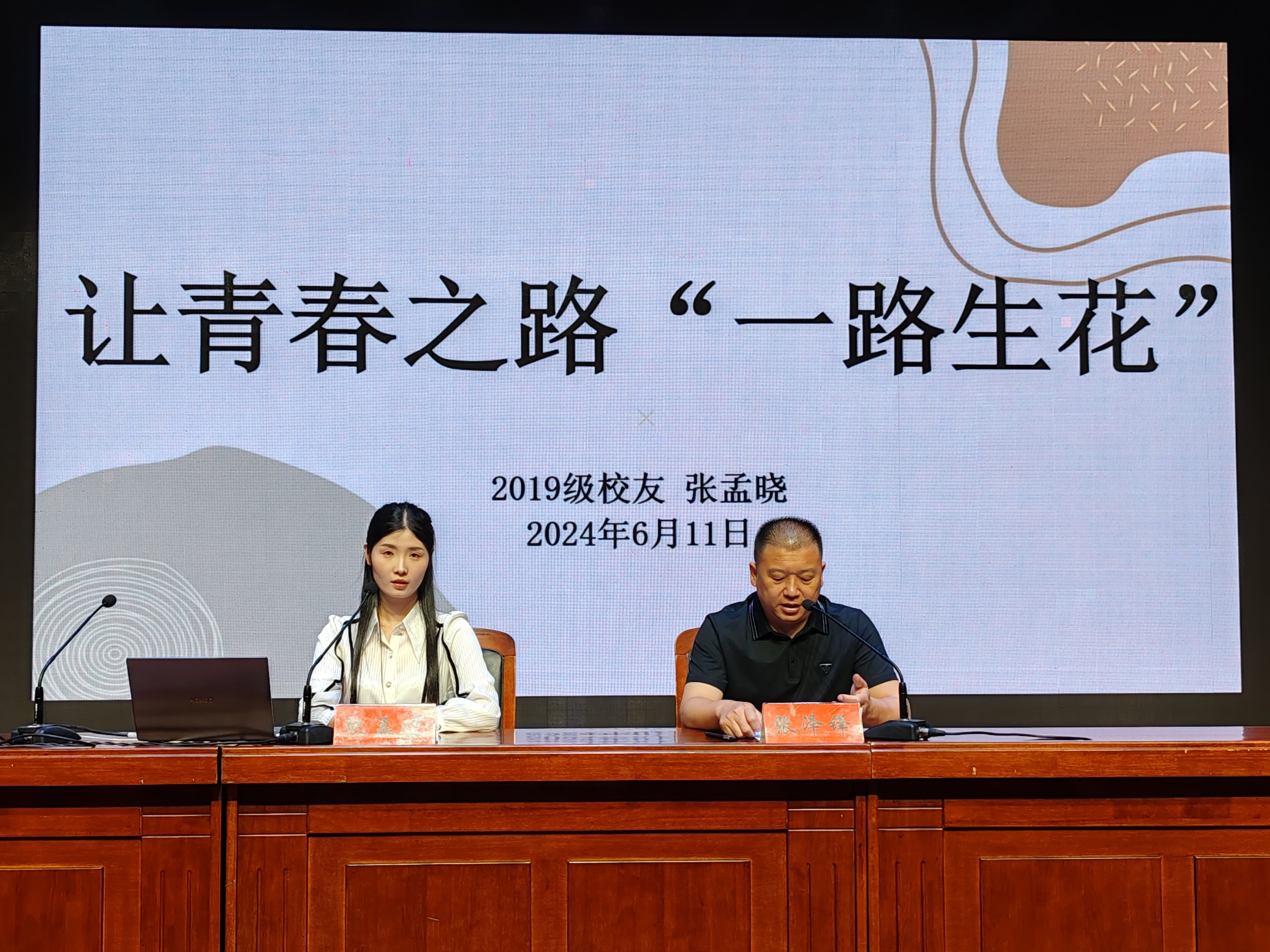 为进一步加强优秀校友的榜样引领作用,激发同学们的学习动力,明确学习目标,更好地规划个人成长道路,beat365中文官方网站于2024年6月11日在图书馆报告厅举行题为“让青春之路一路生花”的报告会。学院由党总支副书记张泽锋主持会议,优秀校友张孟晓以及全院学生参加。