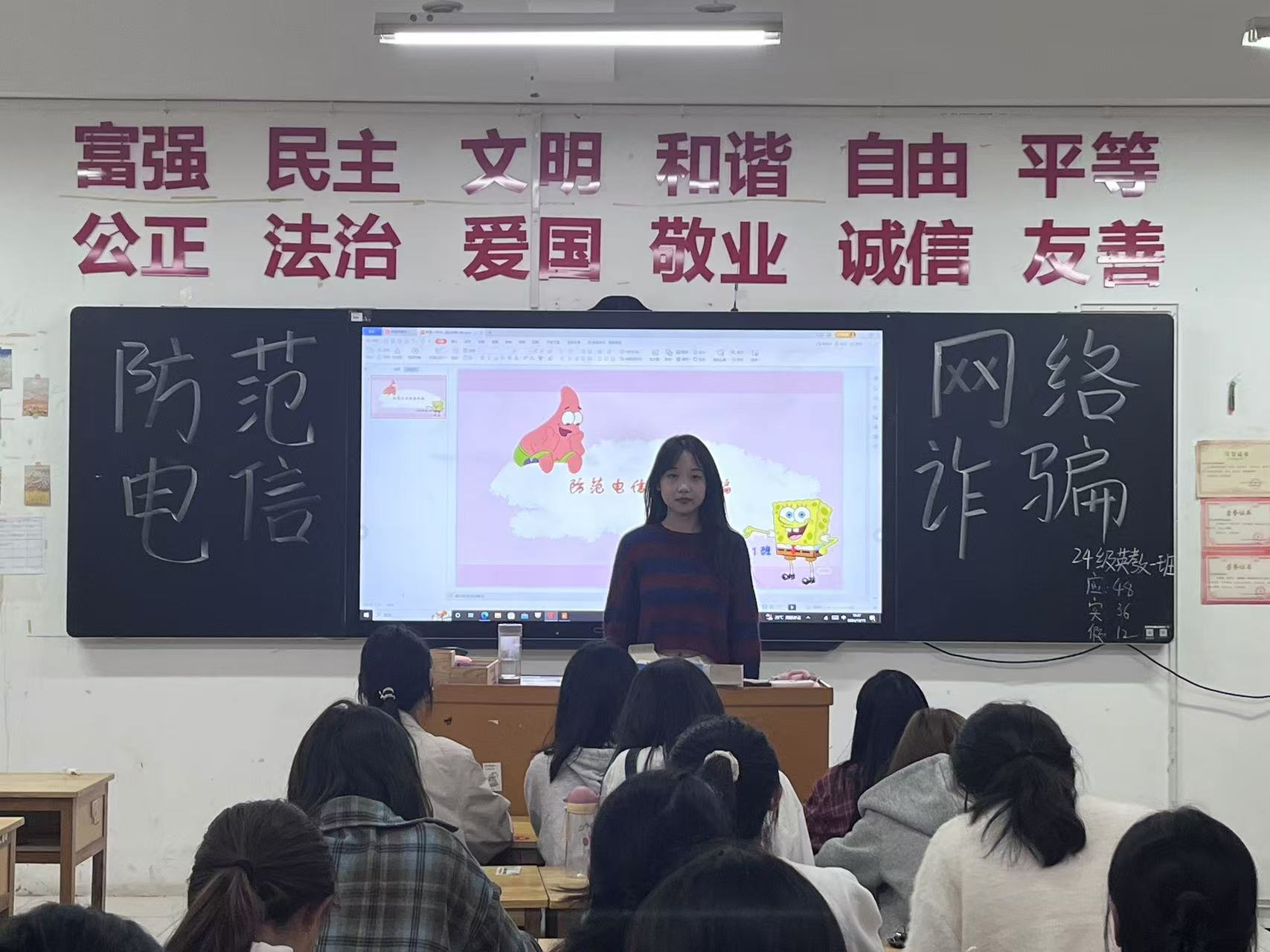 首先,各班班长播放防诈骗视频,结合案例进行分析,组织开展小组讨论,帮助同学们了解最新的诈骗手段和趋势,提高识别能力。然后,各班同学结合身边人遭遇诈骗的经历,讨论如何增强自我保护意识,防范诈骗。最后,各班班长总结诈骗的危害和防范方法,提醒同学们要学会辨别真假信息,提高警惕,自觉采取更好的防范措施。