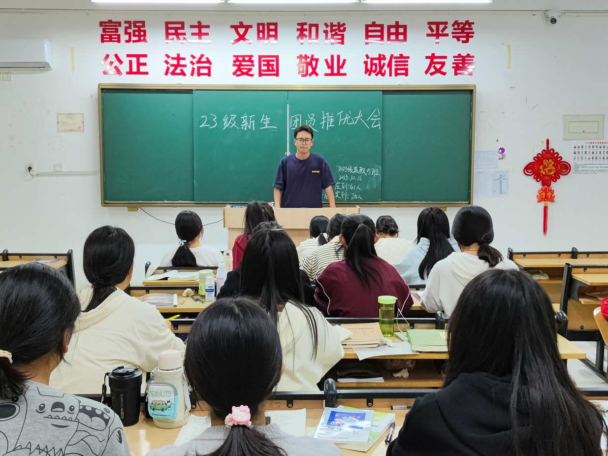 为加强对我院优秀共青团员的引导,积极向党组织输送新鲜血液,发挥好共青团作为党的助手和后备军的重要作用,2023年10月16日晚,beat365中文官方网站组织22级、23级各团支部在本班开展了推优入党大会。